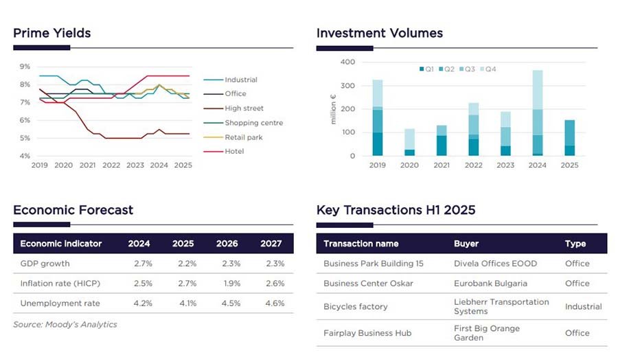 Болгария – 2,8% при инфляции 4,5%. До конца года прогнозируется рост выше 3% и дальнейшее снижение инфляции. Для инвестиционной активности это позитивный фон, но кредиты остаются слишком дорогими для масштабных сделок.