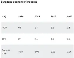 Согласно прогнозам, рост ВВП еврозоны составит 1,2% в 2026 году и ускорится до 1,5% в 2027 году. Инфляция в декабре достигла целевого уровня Европейского центрального банка в 2%, а в начале 2026 года временно опустится ниже этого значения из-за статистических эффектов базы. В среднесрочной перспективе инфляция ожидается около целевого ориентира.