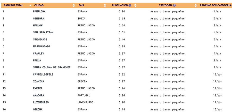 Fourth is San Sebastián (6.51), where the coastal setting and thoughtful layout create comfort for both residents and tourists. Stevenage (6.46) and Majadahonda (6.38) follow, both demonstrating high transport connectivity and well-maintained public realms.
