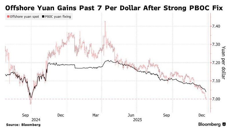 The monetary policy committee said it would determine the scale and timing of measures based on changes in domestic and external conditions. It also reaffirmed its commitment to the basic stability of the yuan at a reasonable and balanced level to avoid sharp exchange-rate swings. Meanwhile, the national currency strengthened amid expectations that the People’s Bank of China would allow a gradual appreciation to bolster market confidence. In December, the yuan rose past the 7-per-dollar level for the first time since September 2024 after the regulator set its daily reference rate at the strongest level for that period. The offshore yuan climbed to 6.9964 per dollar, while in onshore trading the rate strengthened to 7.0067, with flows tilted toward selling the US currency.