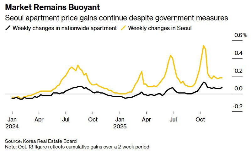 From a financial stability perspective, the Bank of Korea highlights risks in the housing market—particularly in Seoul and surrounding areas—as well as elevated household debt levels. Housing prices in the capital continue to rise despite government measures aimed at cooling demand. According to the Korea Real Estate Board, apartment prices have increased for 46 consecutive weeks, with year-to-date gains reaching 8.3%. Persistent demand was one of the factors behind the Bank of Korea’s decision to refrain from cutting rates in November, amid concerns that cheaper borrowing could fuel speculative activity and increase debt burdens. The central bank stresses that the buildup of financial imbalances requires constant monitoring and a cautious approach to further easing.