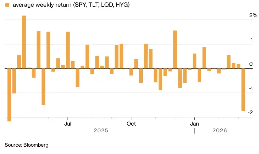 По итогам недели глобальные рынки показали худшую совокупную динамику акций и облигаций с апреля прошлого года, когда давление на активы усилилось из-за торговых тарифов. Индекс S&P 500 продемонстрировал крупнейшее недельное падение с октября.