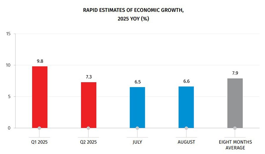 По данным Национальной службы статистики Грузии (Geostat), реальный рост ВВП в августе составил 6,6% по сравнению с аналогичным месяцем 2024 года. Средний темп за январь-август достиг 7,9%, что подтверждает устойчивое ускорение деловой активности в стране.