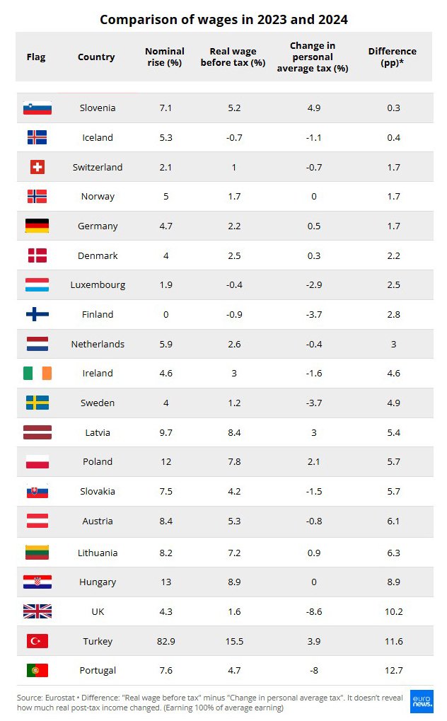 Во Франции динамика оказалась мягче, но тенденция аналогична: рост заработков в 0,7% при росте налогов в 1,7%. OECD связывает это с bracket creep – «ползучим» повышением подоходного налога, при котором рост зарплат не сопровождается пересмотром налоговых порогов. В результате работники автоматически переходят в более высокий диапазон ставок, хотя их реальная покупательная способность не увеличивается. По оценке экспертов, этот механизм обеспечивает до половины прироста налоговой нагрузки в развитых экономиках Европы.