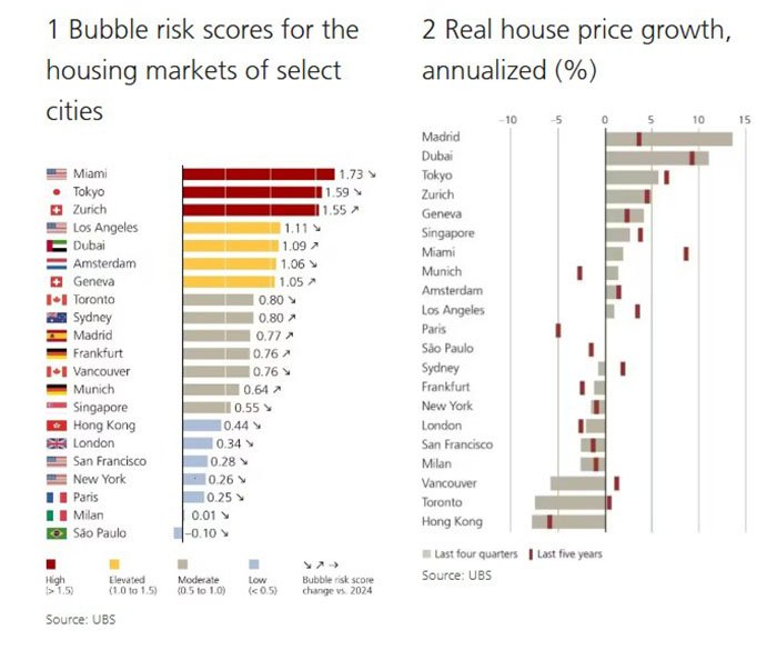 Индекс пузыря UBS 2025: риски перегрева на рынках жилья
