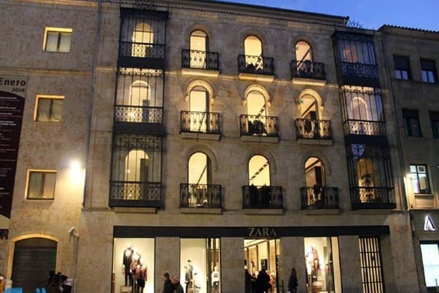 Старинный монастырский комплекс был полностью реконструирован и превращён в магазин Zara с сохранением исторического фасада - пример коммерческого использования религиозной недвижимости.