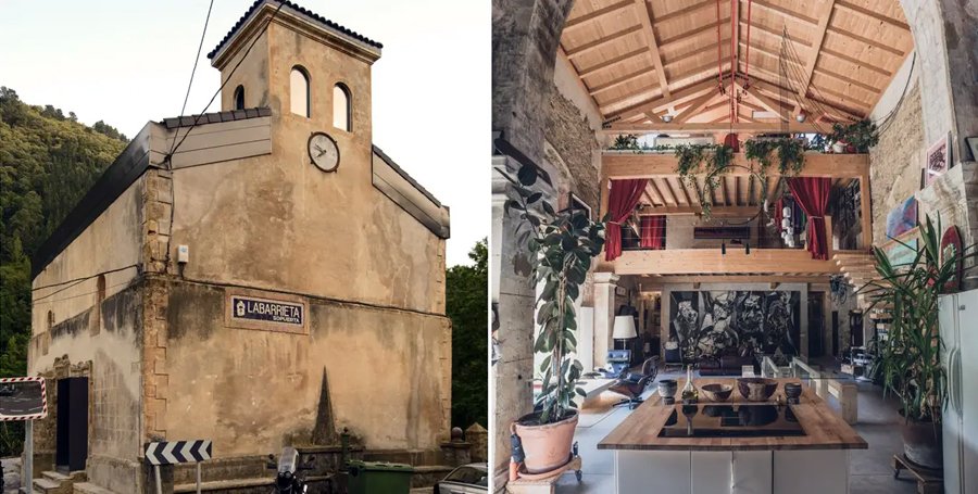 Маленькая церковь XVI века в Баскском регионе была восстановлена и перестроена в просторное жилое помещение (трёхспальная резиденция), став архитектурно стильной частной собственностью.