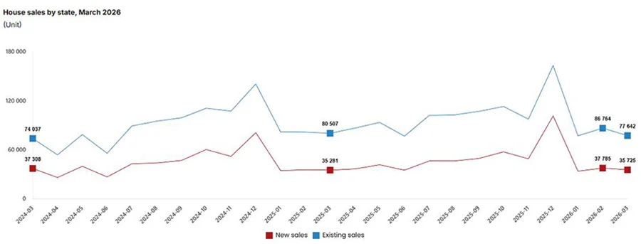 В марте 2026 года в Турции было продано 113 367 объектов жилой недвижимости, что на 2,1% меньше по сравнению с аналогичным месяцем 2025-го. Продажи новостроек увеличились на 1,3% и достигли 35 725. В то же время вторичный сегмент сократился на 3,6% — до 77 642 сделок. В результате структура рынка сохранила устойчивое доминирование существующего жилья, на которое пришлось 68,5% всех договоров. Доля первичного сегмента составила 31,5%.