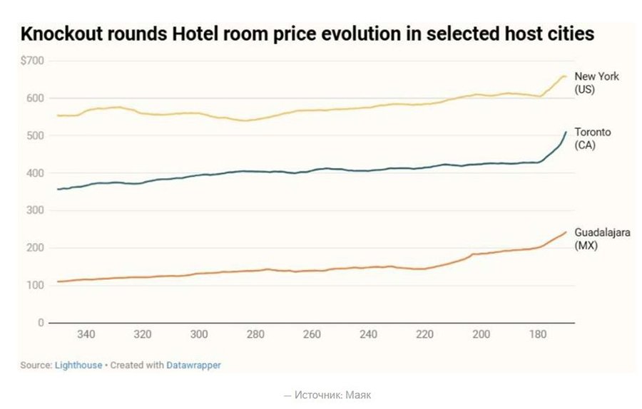 Аналитики International Investment отмечают, что чемпионат мира по футболу 2026 года не формирует единую модель для всего рынка. В Мексике наблюдаются резкие и нестабильные корректировки ставок. Ванкувер сталкивается с хроническим дефицитом предложения и устойчиво высокими ценами. Рынки США удерживают рост под контролем за счёт масштабного номерного фонда и более гибких правил продаж.